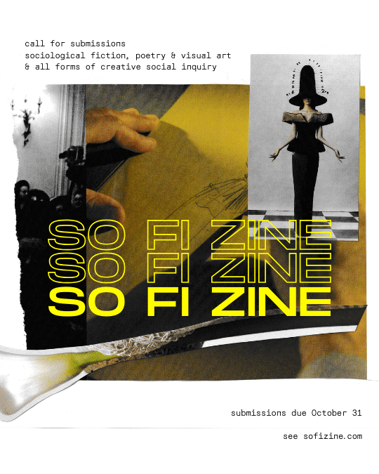 So Fi Zine publishes flash fiction, poetry and visual art inspired by social science and critical social inquiry. Edition #18 will be published in late 2025.