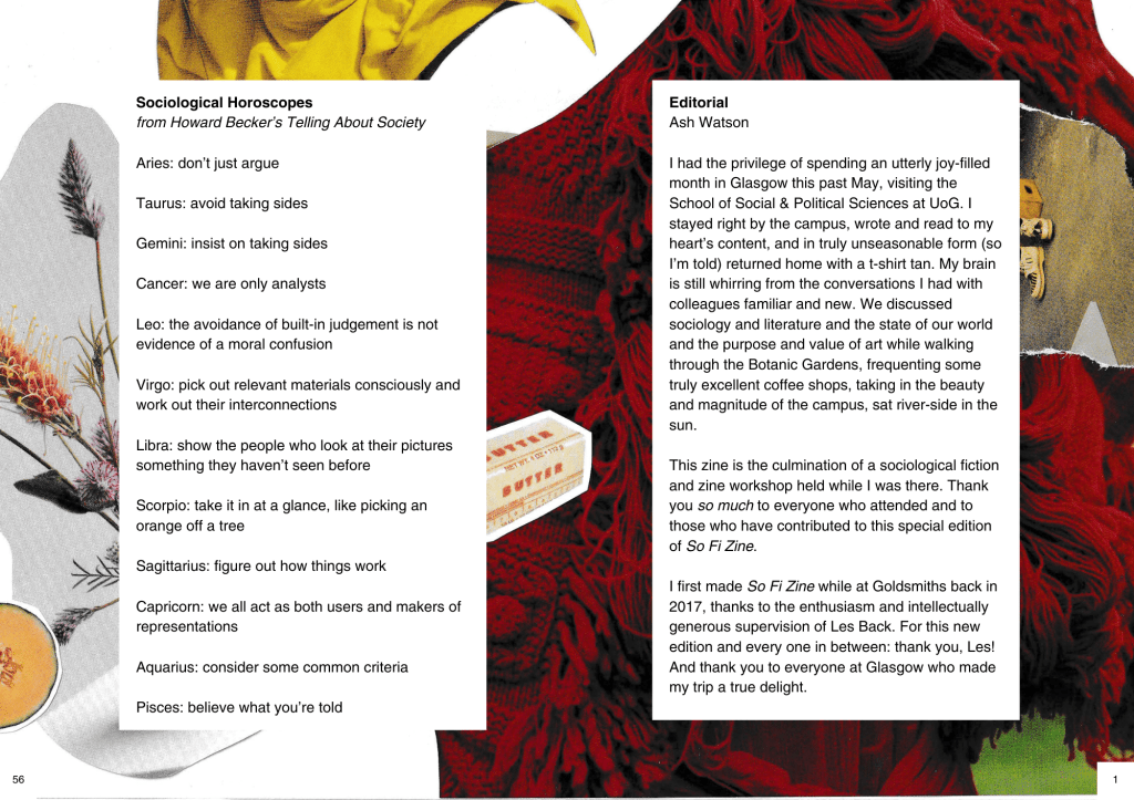 So Fi Zine #17 is a special issue created with sociologists and other academic kin at the University of Glasgow in 2025 – full of new sociological fiction, poetry and visual art.
